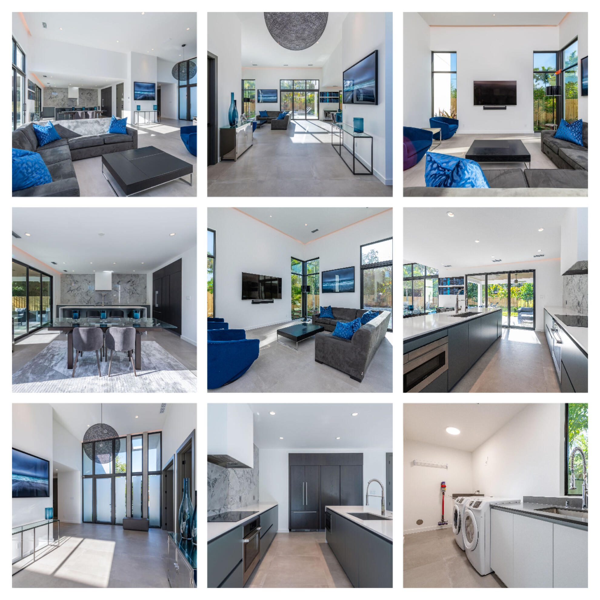 The house boasts a breathtaking sun-drenched main floor with 16 ft ceilings, an open concept Dining and Living Room area (seats 8-10 people), a 80" Samsung TV with basic cable, Netflix, Amazon Prime, Apple TV, along with a Sonos soundbar for TV watching and music, a Chef's Kitchen with large island, Miele stove, cooktop, fridge, microwave, dishwasher, pots, pans, cutlery, glasses, mugs, toaster, blender, coffee makers (Keurig & drip), cooking utensils and a laundry room with washer & dryer.